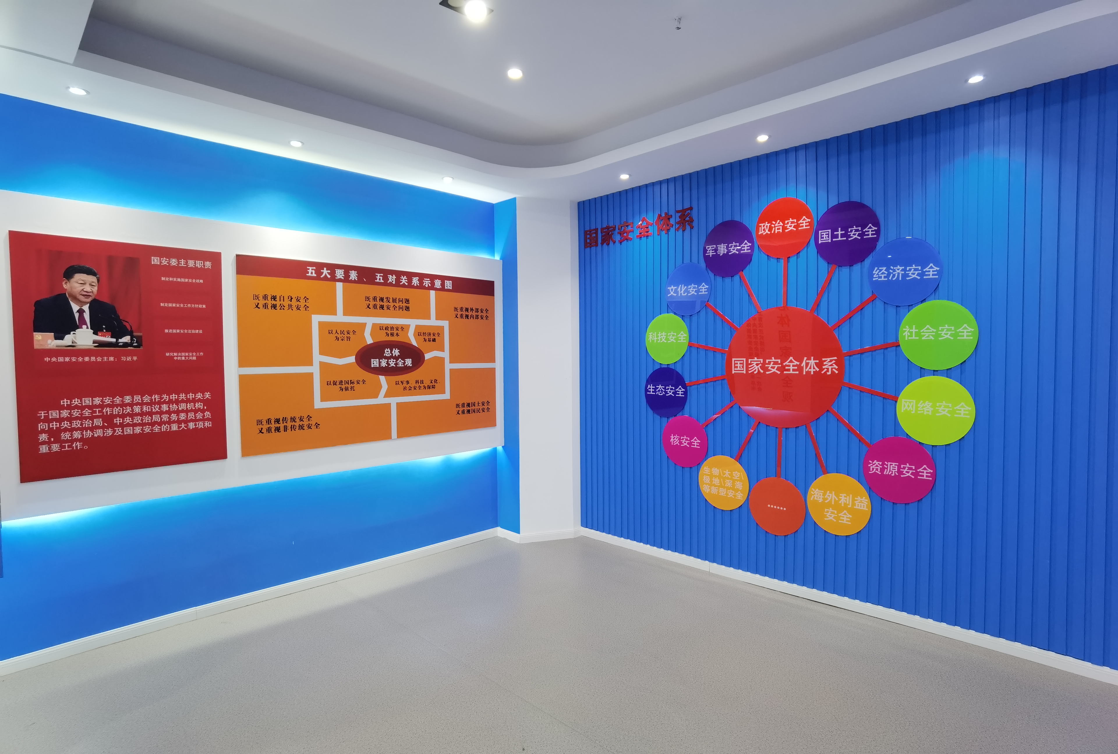 國家安全廳主要介紹了總體國家安全觀、國家安全體系、國家安全相關法律、國家安全法治建設、身邊的國家安全、國家安全發展大事記等等。目的是讓黨員、群眾了解國泰民安是人民群眾最基本、最普遍的愿望。實現中華民族偉大復興的中國夢,保證人民安居樂業,國家安全是頭等大事。