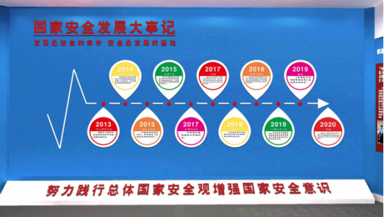展廳一:展示了“總體國家安全觀”的誕生、內容、體系、制度、法律等內容,讓游客從整體上把握“總體國家安全觀”。