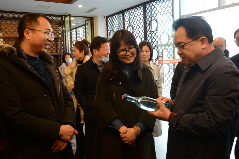 曾國(guó)平一行先后調(diào)研了商貿(mào)中心、黃鶴樓酒文化館、檢測(cè)中心、美酒銀行等場(chǎng)所。在商貿(mào)中心,李良介紹黃鶴樓桂花清酒的釀造原料和生產(chǎn)工藝,并邀請(qǐng)肖筠一行品鑒黃鶴樓原漿美酒,在美酒銀行,李良介紹了黃鶴樓酒“洞釀洞藏”的釀造工藝和儲(chǔ)存環(huán)境。