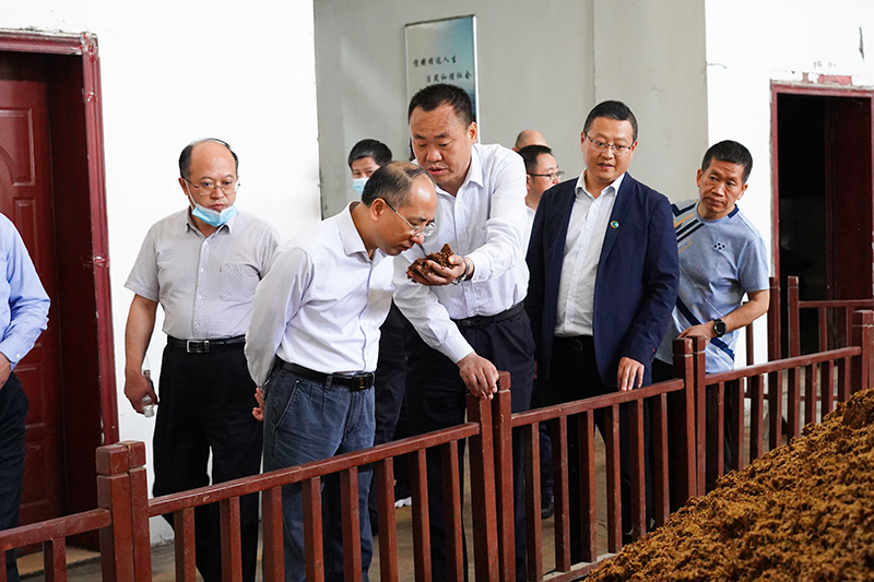 在調(diào)研美酒銀行和釀造車間時,張柏青實地感受了黃鶴樓酒的儲存環(huán)境,仔細查看了黃鶴樓酒酒醅,并了解了黃鶴樓酒生產(chǎn)情況和原酒產(chǎn)能。