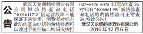 詳情請(qǐng)見(jiàn)長(zhǎng)江日?qǐng)?bào)2016年12月14日期第11版公告
