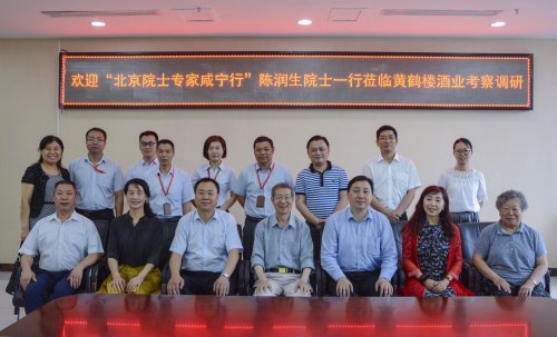 6月14日上午,中國科學院院士、生物學專家陳潤生及夫人任再榮一行到黃鶴樓森林美酒小鎮調研,咸寧市副市長李建新、北京市人社局副調研員葛莉、咸寧市科學技術協會主席劉紅梅陪同調研,黃鶴樓酒業董事長許鵬接待來訪。