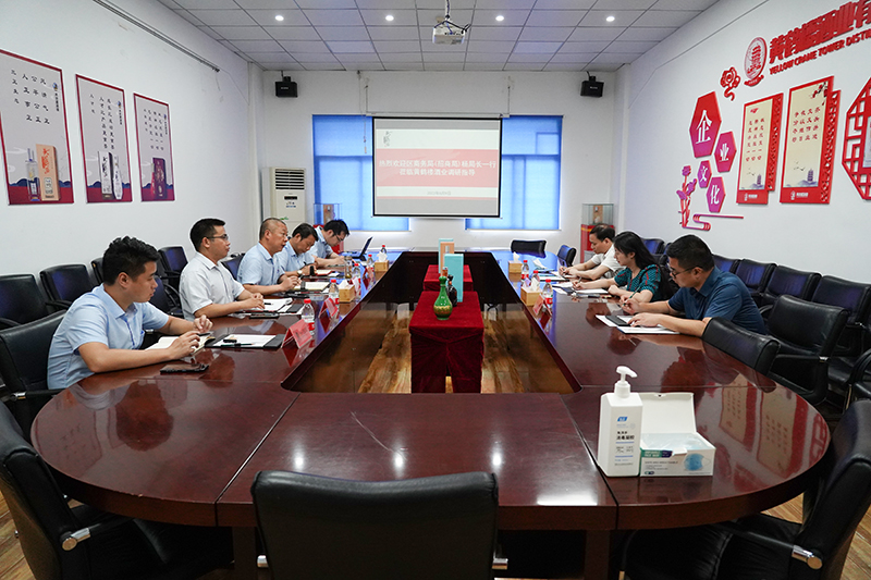 6月9日,漢陽區(qū)商務(wù)局副局長楊雯娟、洲頭街紀(jì)工委書記高斌一行到黃鶴樓酒業(yè)調(diào)研企業(yè)現(xiàn)狀,了解企業(yè)難題。公司黨委委員、副總經(jīng)理魏國參加座談會(huì)。