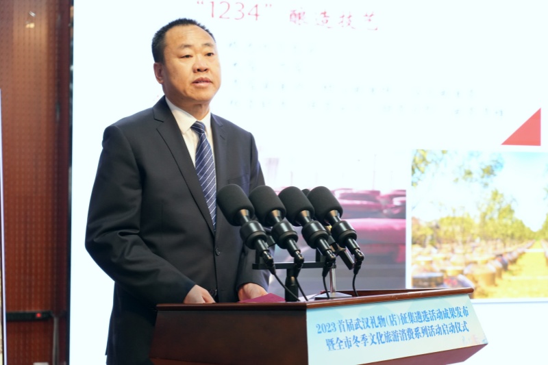 12月12日,2023首屆武漢禮物(店)征集遴選活動成果發布暨全市冬季文化旅游消費系列活動啟動儀式在黃鶴樓酒業盛大舉行。武漢市委常委、市委宣傳部部長吳朝安,市人民政府副市長汪元程,市政協副主席周曉琦,市政府副秘書長王振,市委宣傳部副部長杜健梅,市文化和旅游局黨委書記、局長肖敏,中共漢陽區委書記徐麗,長江日報社、武漢長江日報傳媒集團有限公司黨委書記、社長、董事長陳光出席活動。黃鶴樓酒業黨委書記、董事長許鵬,黨委副書記、總經理朱向紅,高管麻玉俠、王超、魏國參加活動。