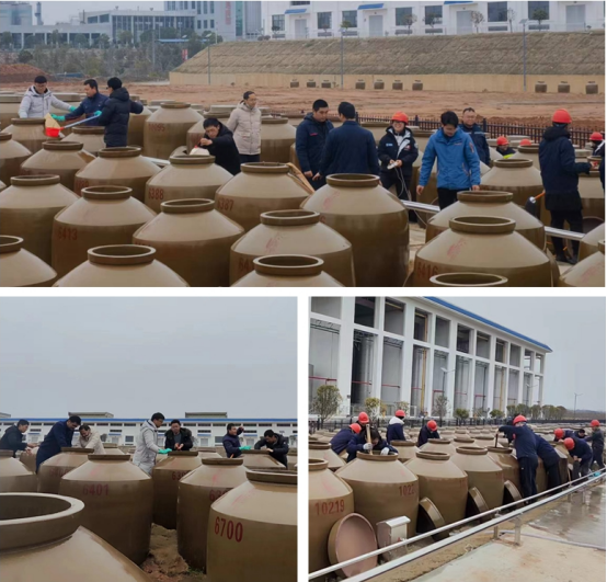 活動開始前,隨州勾儲車間工作人員向大家詳細講解了陶壇清洗操作流程及規范標準。隨后,大家領取拖把、海綿、手套、水泵等清洗工具,相互配合,分工合作,有人負責操作水泵抽水,有人負責清洗陶壇,在春日微寒中干事熱情持續高漲。