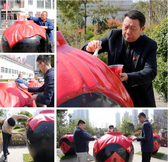 活動(dòng)現(xiàn)場(chǎng),行政黨支部黨員、發(fā)展對(duì)象、積極分子、團(tuán)員對(duì)小花園、主干道等區(qū)域的酒壇進(jìn)行重新上漆,大家團(tuán)結(jié)協(xié)作、共同配合,有條不紊地進(jìn)行調(diào)漆、打磨、清掃、涂刷等步驟,認(rèn)真仔細(xì)地完成了酒壇刷漆工作,美化了廠區(qū)環(huán)境。
