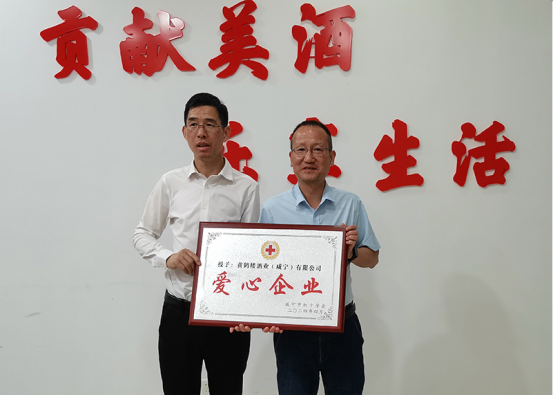 會上,胡漢雄代表咸寧市紅十字會向黃鶴樓酒業(咸寧)有限公司授予咸寧市“愛心企業”稱號。