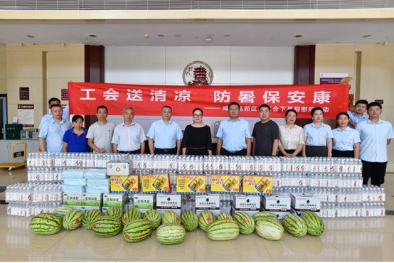 王琳瑕叮囑一線職工們注意防暑降溫、確保自身安全,并送上西瓜、金銀花露、毛巾、防暑飲料等消暑降溫物資,在炎炎夏日為一線職工撐起夏日“清涼傘”。