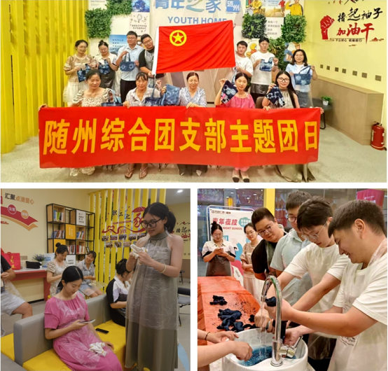 本次課程以“非遺傳承,青春同行”為主題。活動現場,非遺扎染技藝老師詳細介紹了扎染的歷史、現狀及制作過程。在領取制作材料后,青年員工們通過折疊、捆扎、扭曲、染色等步驟,扎染出自己喜愛的圖案紋理。