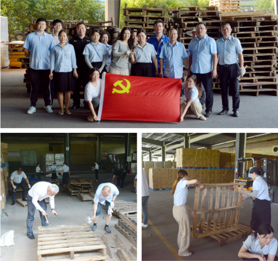 活動現場,全體黨員熱情高漲、分工協作,紛紛拿起各自維修工具,熟練地將出現松動、脫釘、斷裂等問題的廢舊托盤進行加固修復,經過數小時努力,一批原本即將報廢的托盤被修復一新,即將重新投入生產使用。
