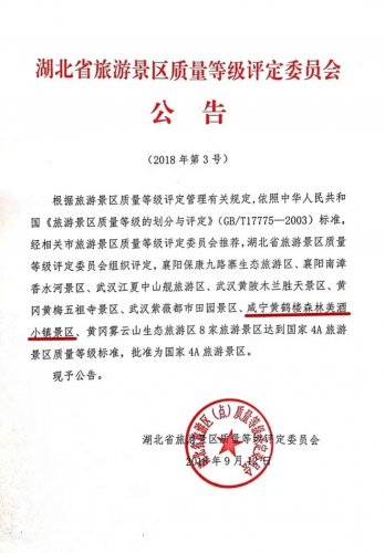 9月12日,湖北省旅游景區(qū)質(zhì)量等級評定委員會發(fā)布公告,黃鶴樓森林美酒小鎮(zhèn)正式獲批為國家AAAA級旅游景區(qū)。