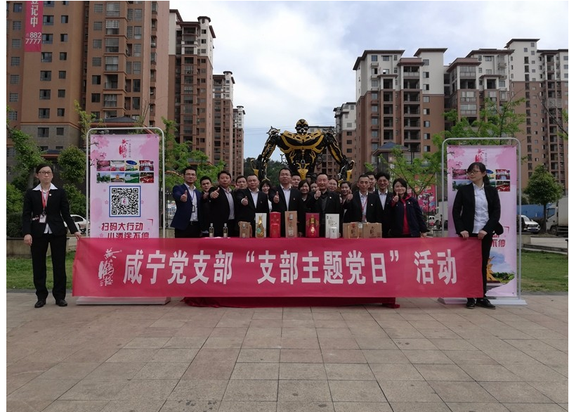 4月16日,咸寧黨支部組織全體黨員在青龍山公園開展支部主題黨日5+N“助力品牌+景區宣傳”活動。咸寧分廠黨支部書記、廠長李良,酒體設計總工程師李久洪,釀造管理中心總監助理趙源生,咸寧分廠總監助理陳朝陽參加活動。